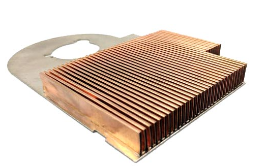 折り畳みフィンは 、金属シートを折り畳みプロセスにかけることで構築され、より大きな表面積を持つさまざまな幾何学的形状を作成します。これらのフィンは液体冷却プレートを含むさまざまなテクノロジーで使用できます。多くの場合、それらはベースに接着またははんだ付けされてヒートシンクを形成します。