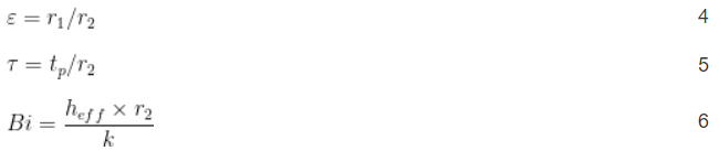 熱拡散抵抗の計算に使用される有効対流係数 h effは、式 18 から導出されます。