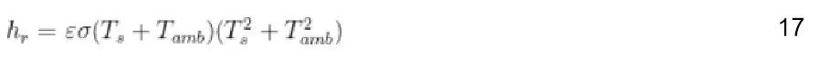 プレートは周囲のより大きな表面に熱を放射すると想定されているため、周囲の環境は理想的な放射体または黒体とみなすことができます。場合によっては、周囲の表面の温度が外気温と異なる場合があります。この場合、式 15 の T amb を 周囲の表面の温度に置き換える必要があります。